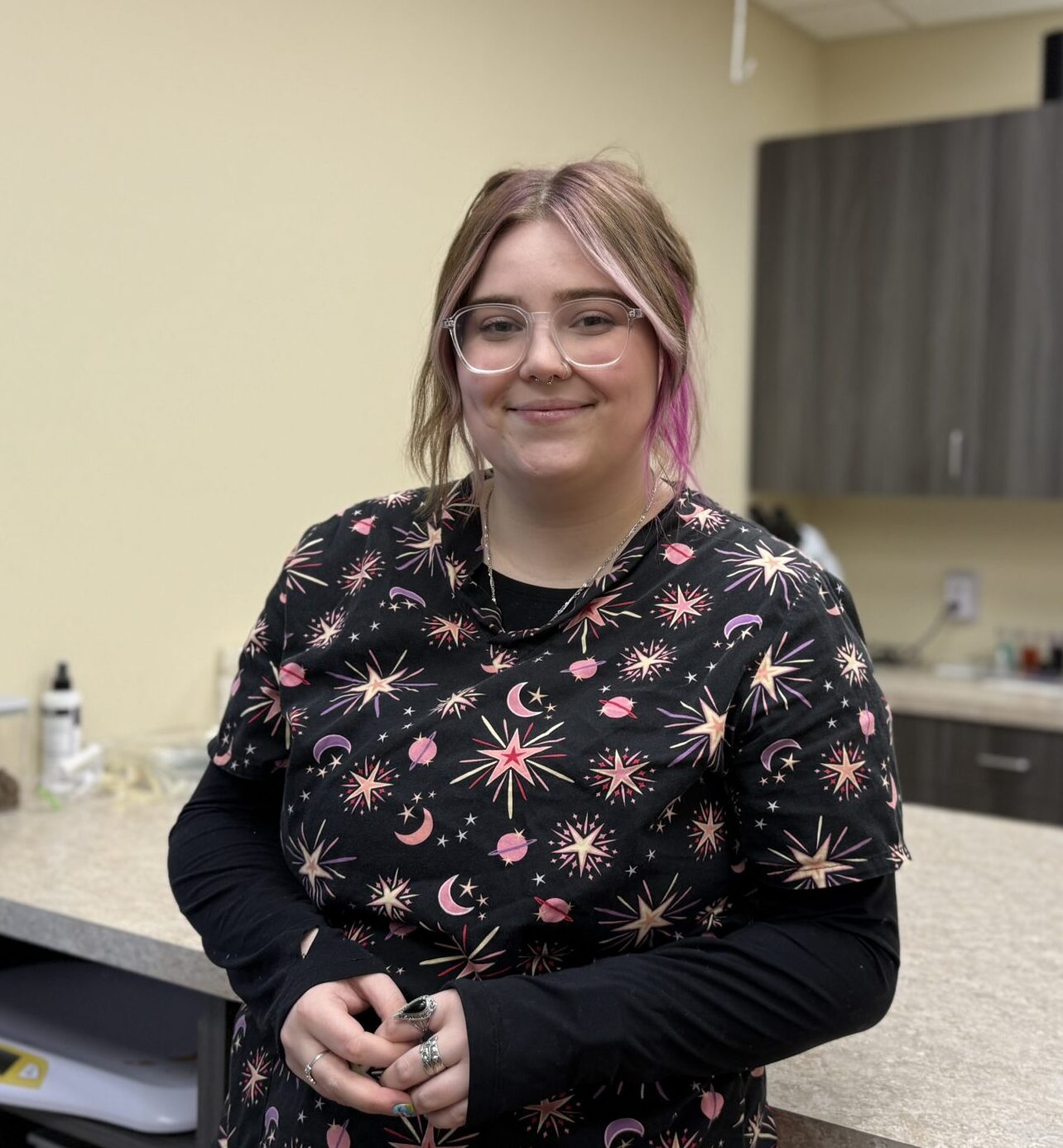 Savannah was born and raised in Milwaukee. Her love of animals started from the day she was born with her family’s black lab, Ozzy. Growing up, she was always around animals, whether it be at home with Ozzy, at her grandparents house with their huskies, or her mom taking her to the zoo. She knew very quickly she wanted to work with animals, and started in the veterinary field in 2021. She is very creative and loves sharing that side of herself with clients. In her spare time, she enjoys reading, doing her nails, snuggling her two cats, Yelena and Sirius, and seeing the latest Marvel movie.
